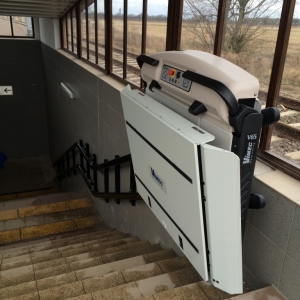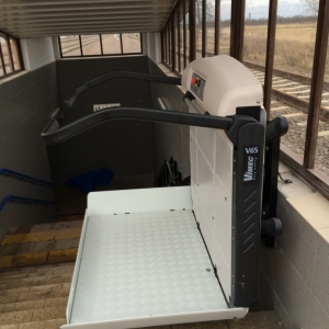 Platforma schodowa V65 to bardzo uniwersalne urządzenie służace do przewozu osób niepełnosprawnych poruszających się na wózkach. Znakomicie spełni swoją funkcję udostępniając niepełnosprawnym podróżnym perony Dworca Osobowice we Wrocławiu.