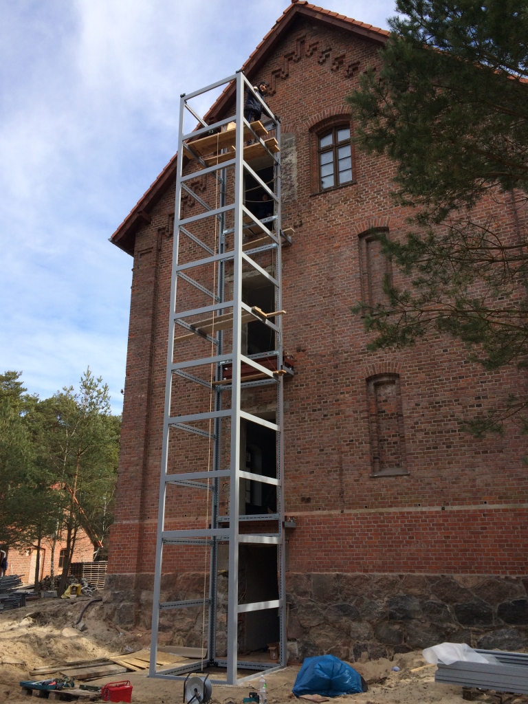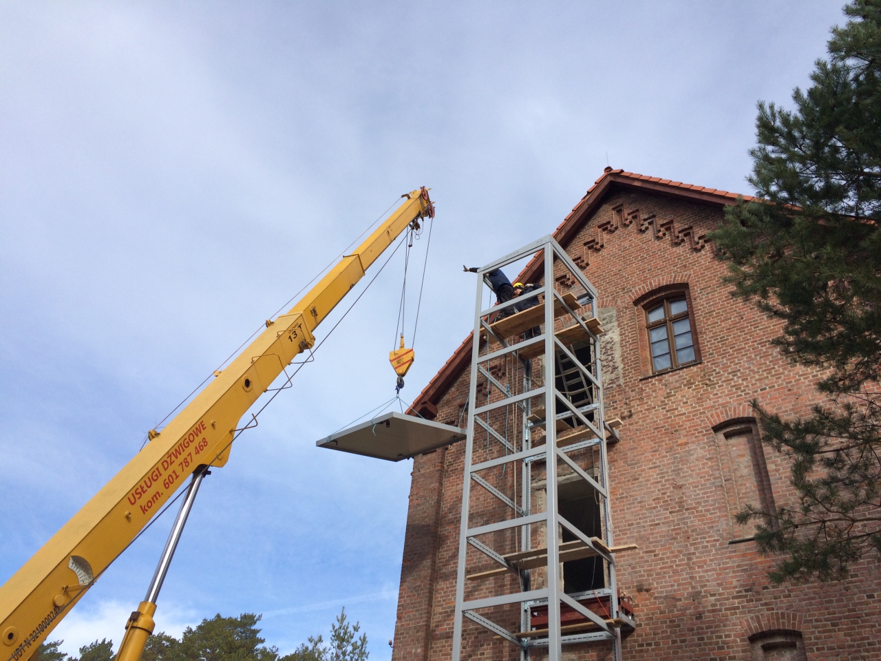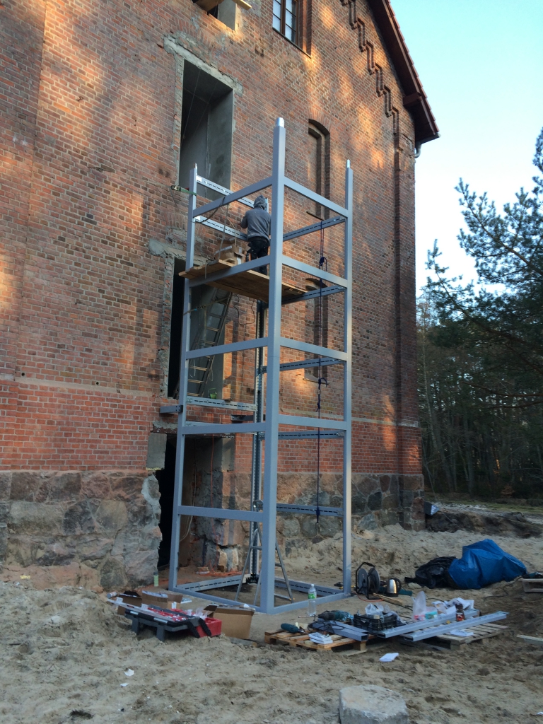 Podnośnik pionowy E10 - Osada Latarnika - stawianie szybu windy