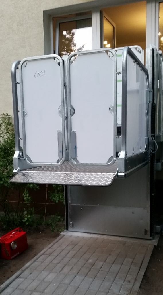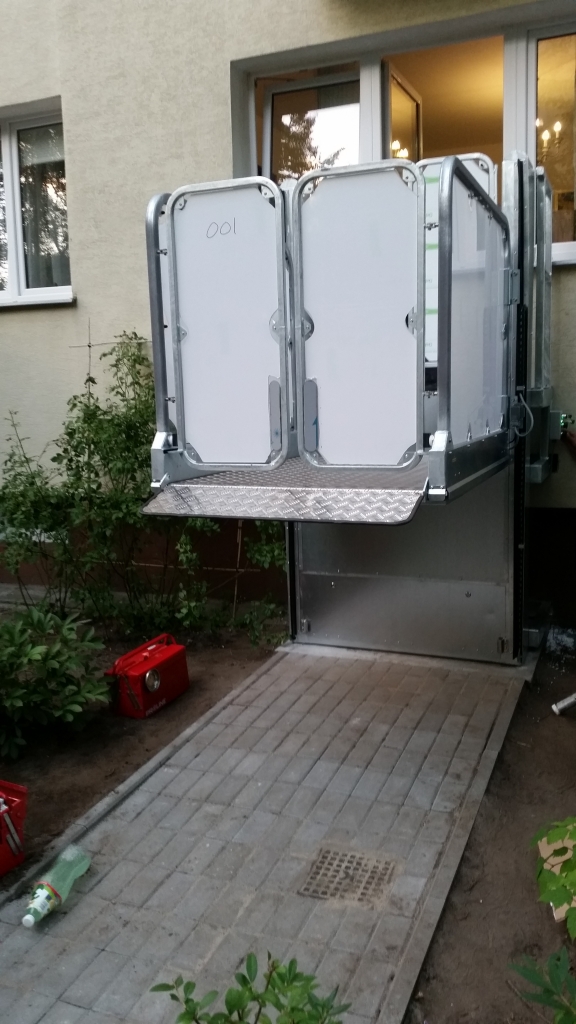 Oto kilka zdjęć z ukończonego montażu windy Strategos, która doskonale, w budynku mieszkalnym, zniwelowała barierę architektoniczną łącząc balkon ze stałym podłożem.