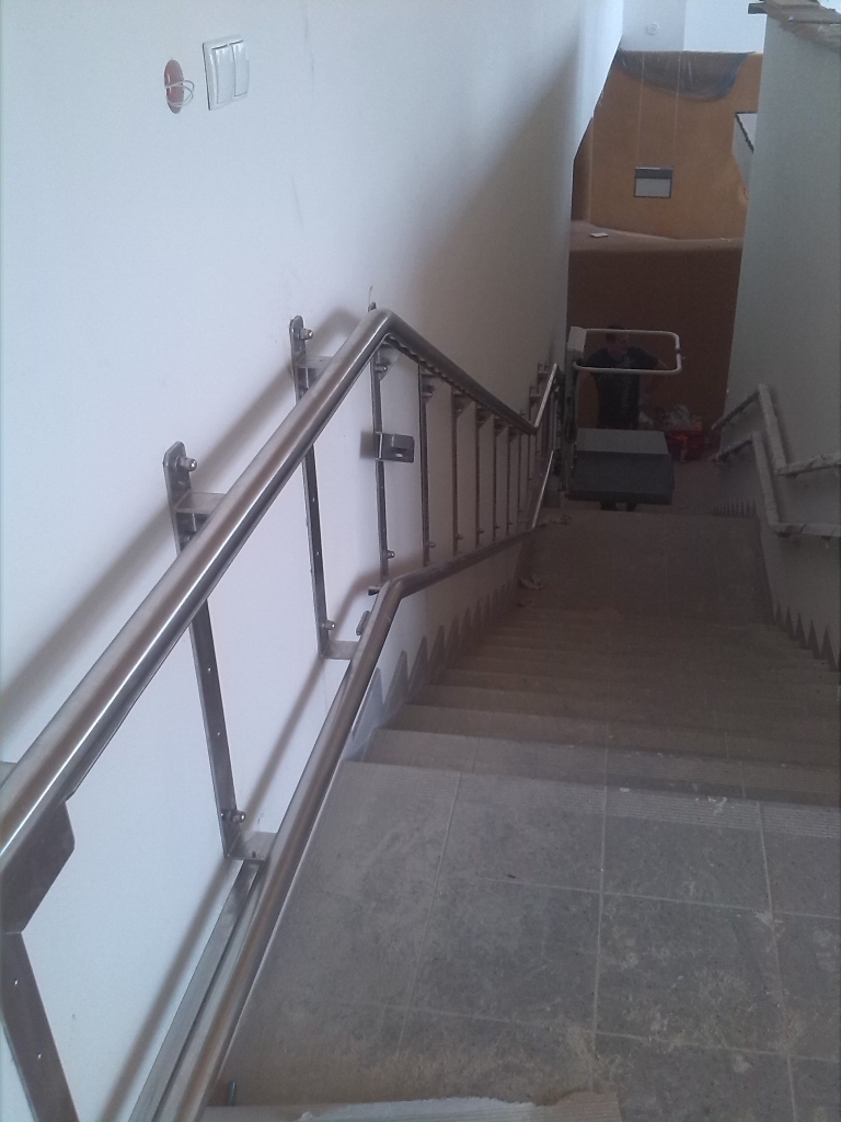 Nowopowstające Integracyjne Centrum Rozwoju Dziecka w Słomnikach ma już zainstalowaną platformę dla osób niepełnosprawnych, która udostęponi wszystkie kondygnacje budynku znjadujacych się na parterze oraz antresoli - długość toru jazdy to 11 metrów. Platforma jest wyposażona w siedzisko, co zdecydowanie zwiększa możliwości korzystania z tego urządzenia przez dzieci i dorosłych z różnymi dysfunkcjami ruchu. Oto kilka zdjęć z efektów montażu.