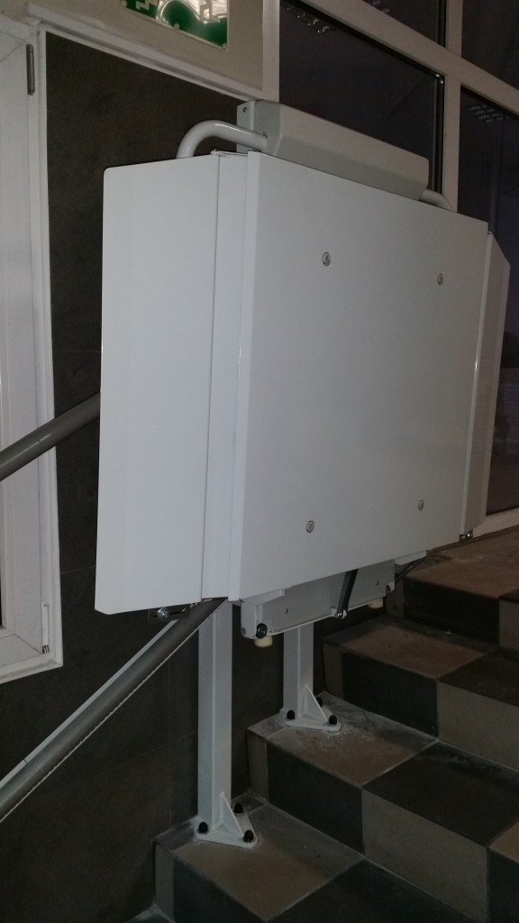 Prezentujemy kilka zdjęć po montażu platformy schodowej o toże prostoliniowym typu DELTA w jednym z pawilonów handlowych w dzielnicy Gronowo w Lesznie.