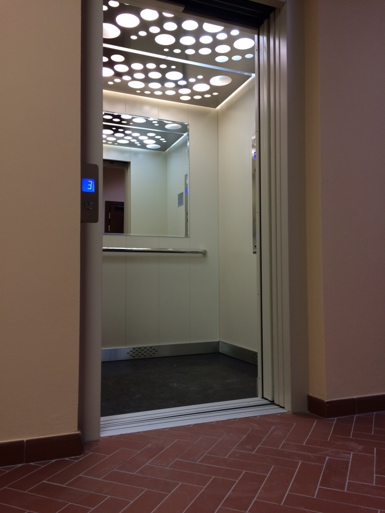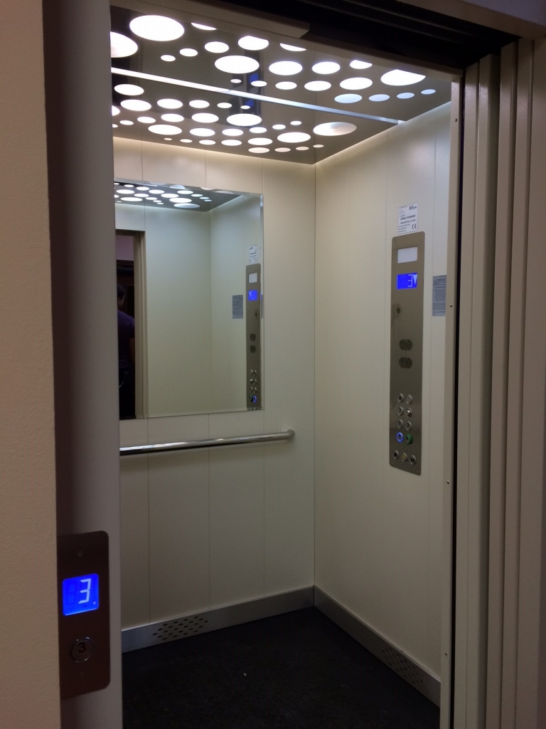 Grudzień - miesiąc dokańczania wielu inwestycji. Kolejne urządzenie oddane do użytku - tym razem w najstarszym w Polsce Liceum Ogólnokształcącym w Płocku (rok założenia datowany na XII w.) - zamontowaliśmy windę osobową typu Green Lift (tzn. Zielona Winda) MRL-MC o udźwigu do 850 kg. Windę cechuje cicha praca, szereg mechanizmów zabezpieczających i wspomagających jej pracę, między innymi intercom. Uwagę zwraca estetyka wykonania kabiny, z lustrem, piętrowskazywaczem i ciekawym geometrycznym sufitem. Widna obsłuży 5 pięter budynku szkoły, zapewniajac dostęp osobom niepełnosprawnym i ich opiekunom. Oto jak urządzenie prezentuje się na zdjęciach.