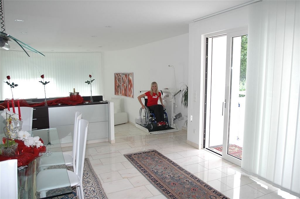 Innowacyjnym rozwiązaniem jest w opcji dodatkowej zamontowanie siedziska i jest to propozycja dla osób poruszających się o własnych siłach, ale mąjcych problem z pokonaniem schodów. Wówczas przejazd platformą na krzesełku daje chwilę wytchnienia.