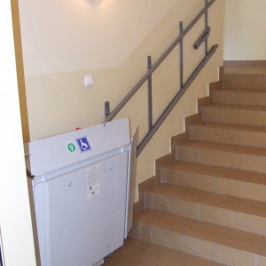 Proponowane Państwu urządzenie jest idealnym rozwiązaniem przy nie ograniczonej liczbie kondygnacji schodów, po warunkiem, że są one w linii prostej bez zakrętów. Uruchomienie platformy odbywa się przy użyciu pilota znajdującego się na panelu sterowniczym. Podczas postoju na przystanku odbywa się ładowanie akumulatorów ukrytych w części napędowej platformy. Dzięki takiemu rozwiązaniu, z urządzenia można korzystać, nawet jeżeli zabraknie prądu w sieci.