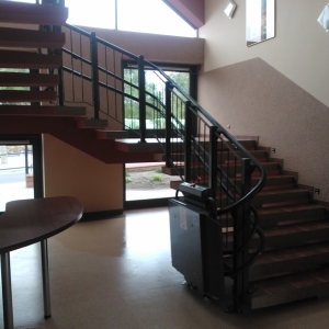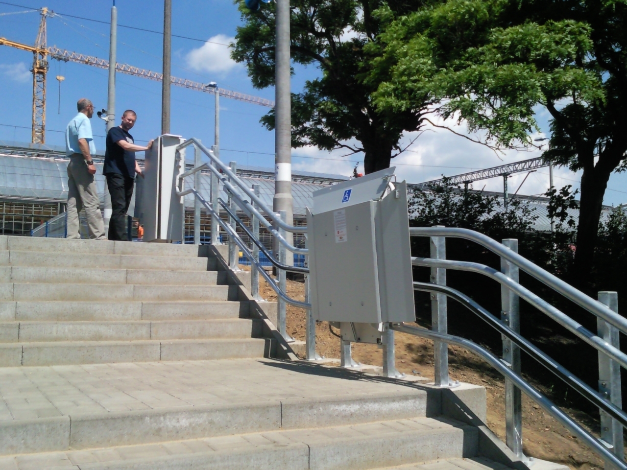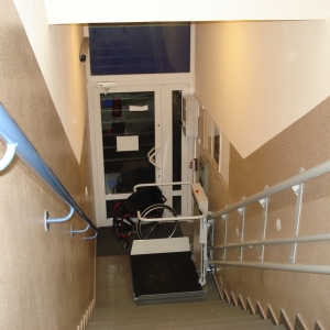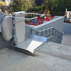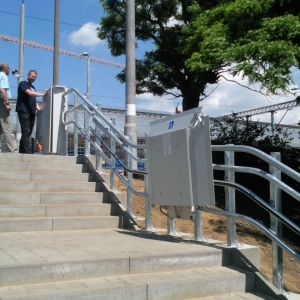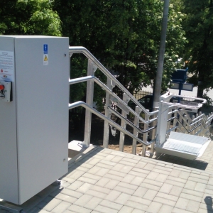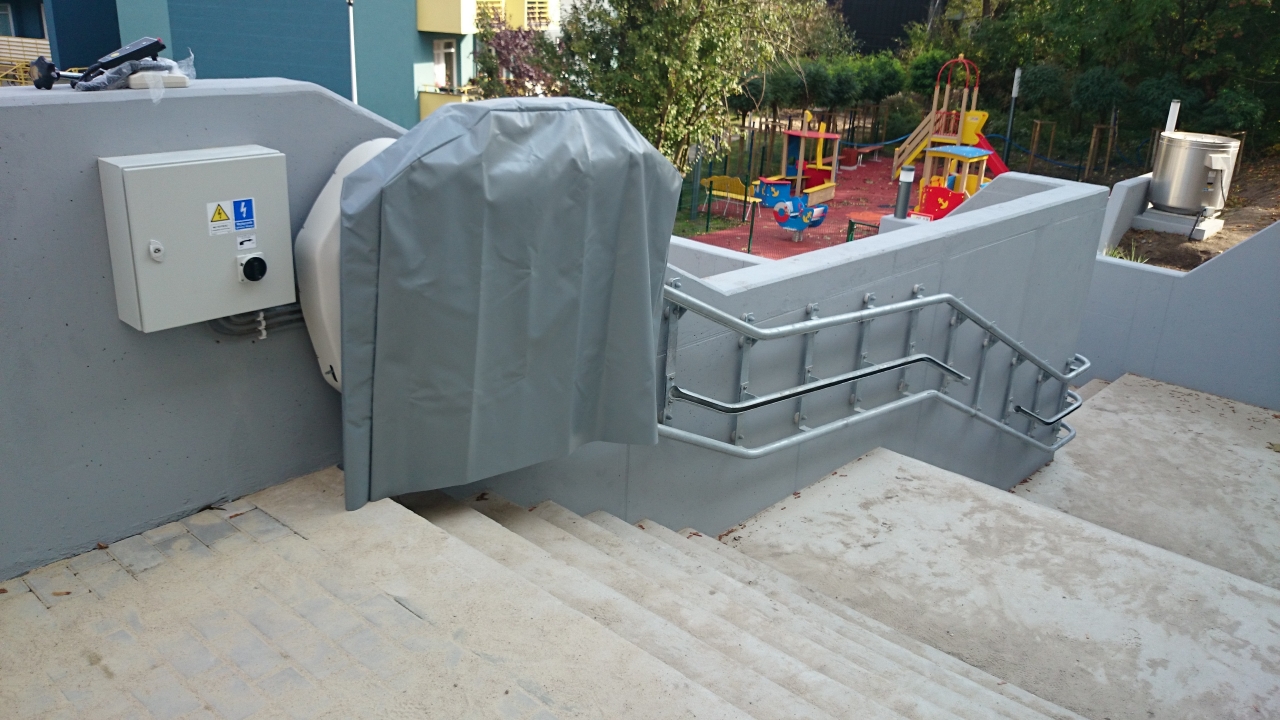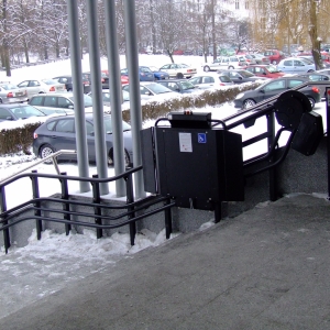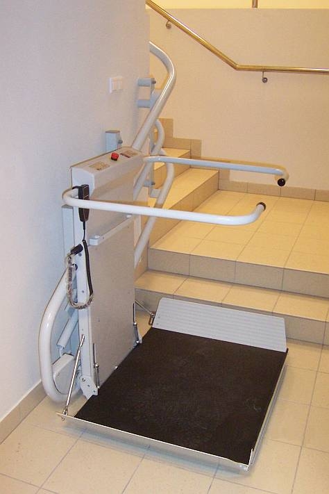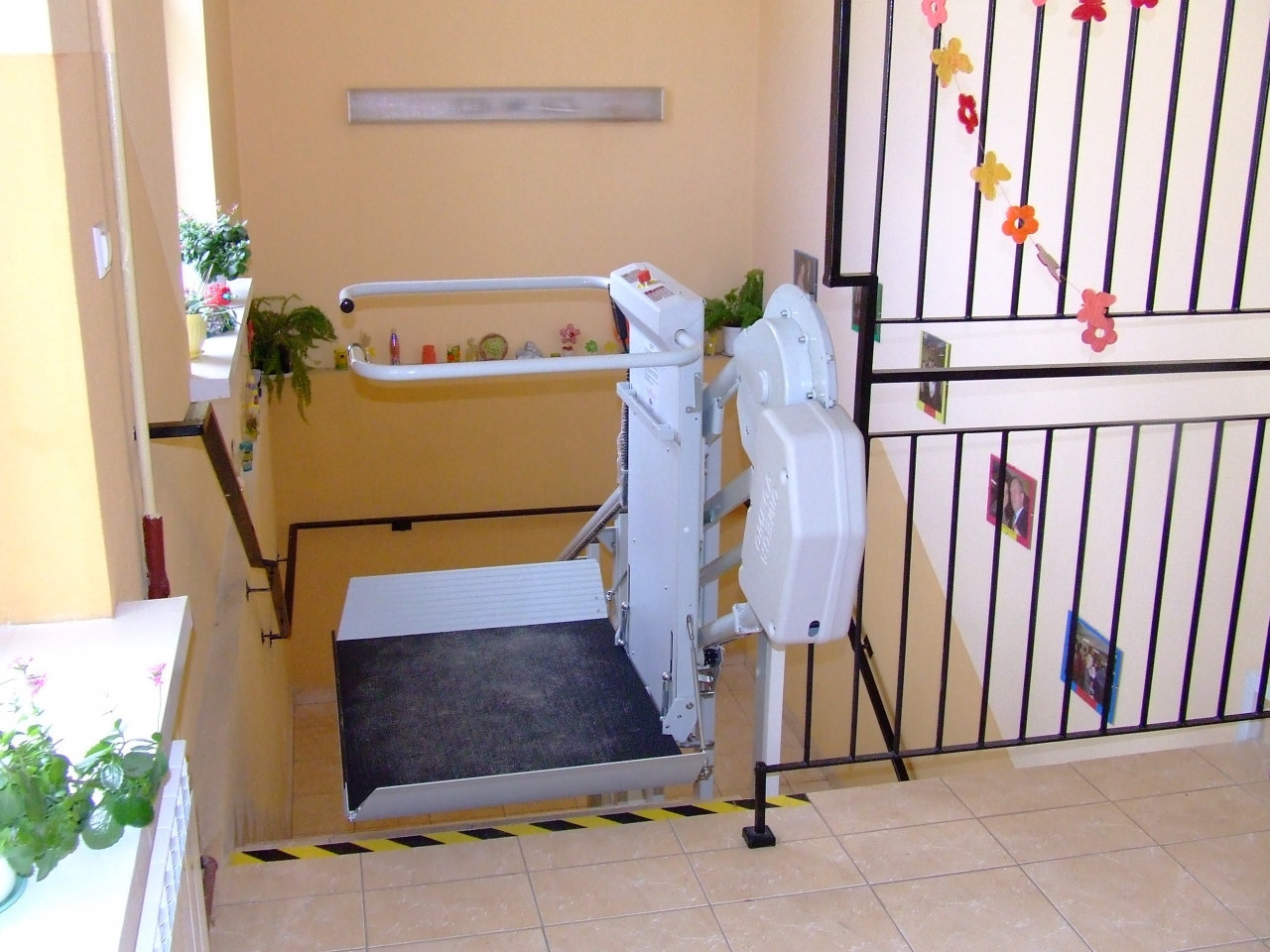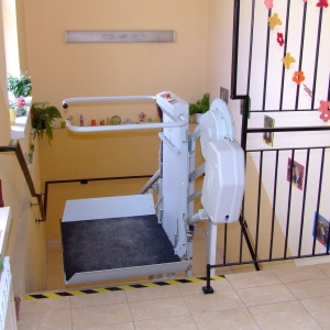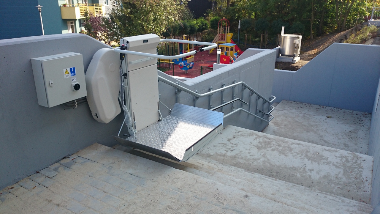 Platforma przychodowa O-GA przeznaczona jest do pokonania różnicy poziomów w postaci schodów przez osoby poruszające się na wózka inwalidzkich lub dla osób, które chodzą lecz mają problemy z przemieszczaniem się po schodach.