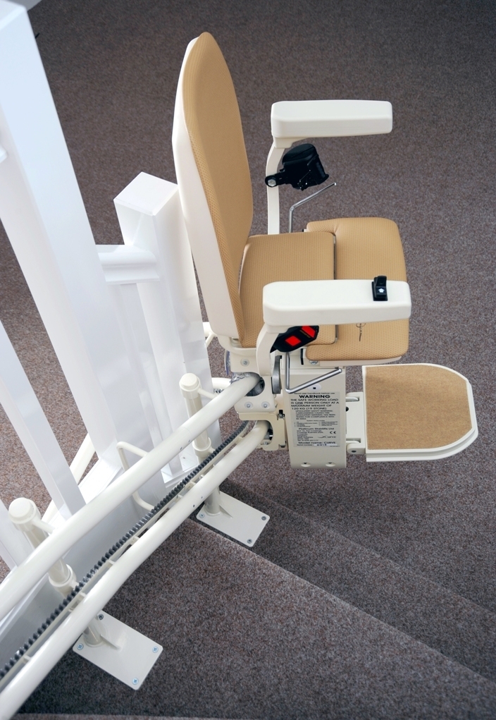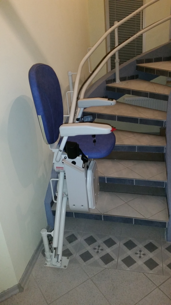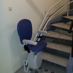 Winda schodowa Platinum porusza się po torze krzywoliniowym.To ciekawa propozycja dla osób starszych, niepełnosprawnych mających problem przy pokonywaniu schodów, często we własnym domu. Urządzenie jakie proponujemy ma kształt estetycznie wykonanego krzesełka dźwigowego o napędzie elektrycznym. Krzesłko przyschodowe może poruszać się po szynie o dowolnym kształcie, dzięki joystikowi sterującemu zlokalizowanemu pod prawym lub lewym podłokietnikiem. Krzesełko jest wykonane z tworzywa o dużej wytrzymałości i łatwości pielęgnacji.