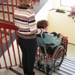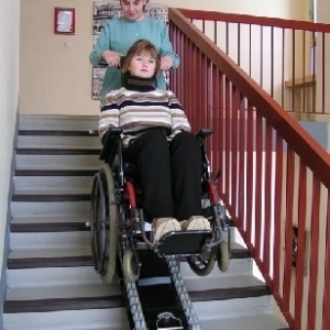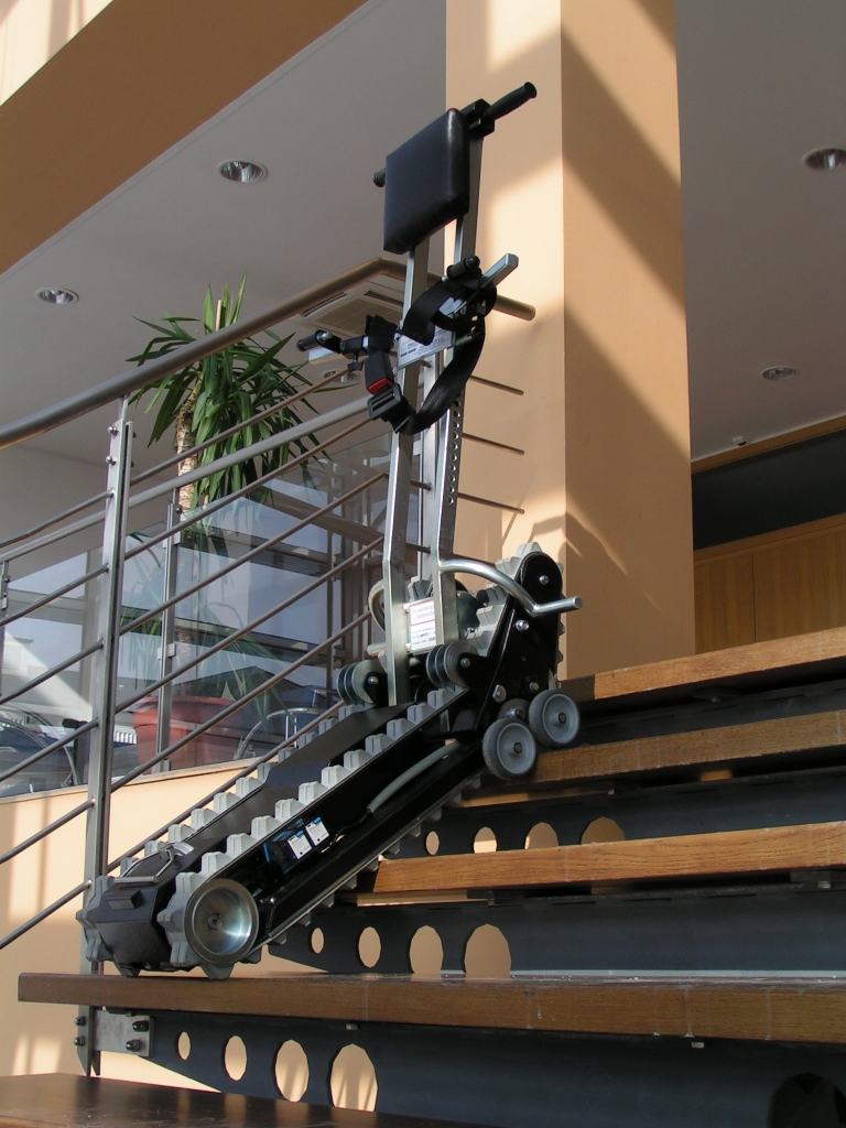 Schodołaz gąsienicowy CLIMBER 1 jest urządzeniem mobilnym, poruszającym się po schodach, ułatwiającym transport osoby niepełnosprawnej wraz z wózkiem. Korzystanie z urządzenia wymaga obecności opiekuna. W standardzie schodołaz gąsiennicowy Climber 1 posiada specjalnej konstrukcji elementy mocujące wózek z osobą niepełnosprawną do górnej kolumny, które pozwalają na zamontowanie na urządzeniu 95 % rodzajów wózków ręcznych inwalidzkich. Wyjątek stanowią: wózki elektryczne, wózki do aktywnej rehabilitacji, wózki z małymi kołami tylnymi oraz wózki o szerokości powyżej 50 cm. Jednak po specjalnych modyfikacjach również takie wózki mogą zostać zamontowane na schodołazie CLIMBER 1.