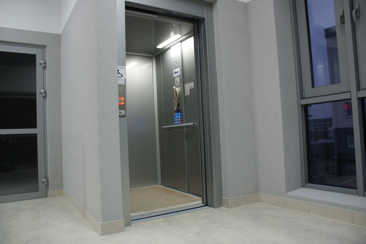 Jednym z naszych ciekawszych montaży miał miejsce pod koniec 2013 r. W miejscowości Grójec zamontowaliśmy podnośnik pionowy dla osób niepełnosprawnych typu E10 włoskiej produkcji. Platforma ta podnosi się na wysokość 3,6 m, a instalacja odbyła się w szybie murowanym. Wykonany montaż doskonale eksponuje walory tego urządzenia, a przede wszystkim estetykę oraz funkcjonalność. W tym urządzeniu zastosowane zostały drzwi automatyczne, teleskopowe zamocowane na przystankach oraz kabinie, co pozwala na pracę tego urządzenia w trybie automatycznym, co z punktu widzenia przeciętnego użytkownika platforma niczym nie różni się od zwykłej windy osobowej, ponieważ po wybraniu piętra kabina jedzie na żądany przystanek bez konieczności trzymania przycisku jak ma to miejsce w przypadku większości urządzeń dla niepełnosprawnych. Zachęcamy do obejrzenia galerii zdjęć tego urządzenia.