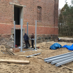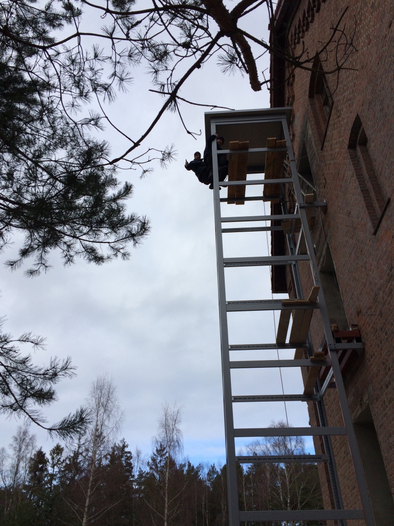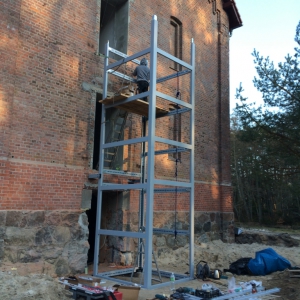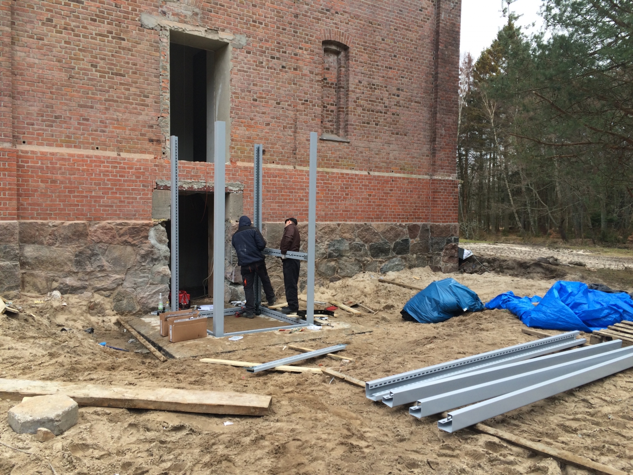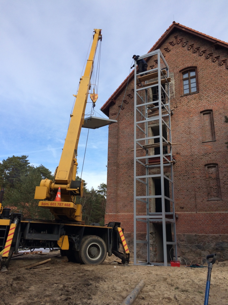 Podnośnik pionowy E10 - Osada Latarnika - stawianie szybu windy