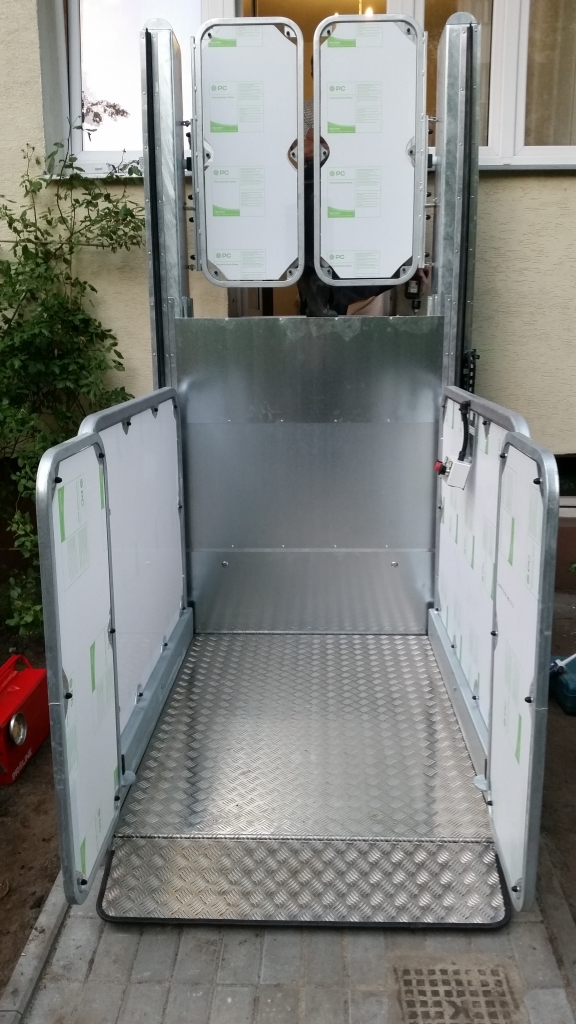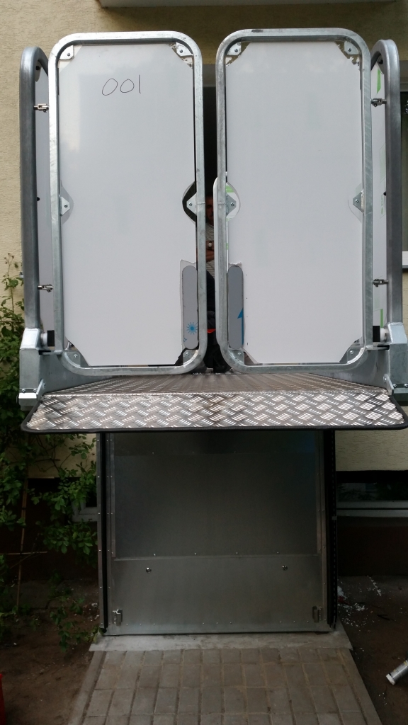 Oto kilka zdjęć z ukończonego montażu windy Strategos, która doskonale, w budynku mieszkalnym, zniwelowała barierę architektoniczną łącząc balkon ze stałym podłożem.