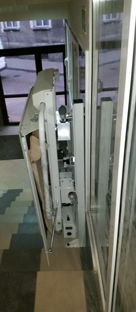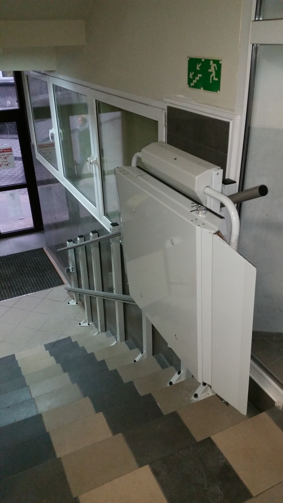 Prezentujemy kilka zdjęć po montażu platformy schodowej o toże prostoliniowym typu DELTA w jednym z pawilonów handlowych w dzielnicy Gronowo w Lesznie.
