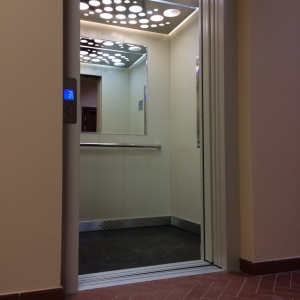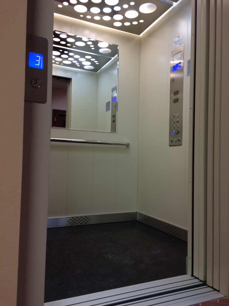 Grudzień - miesiąc dokańczania wielu inwestycji. Kolejne urządzenie oddane do użytku - tym razem w najstarszym w Polsce Liceum Ogólnokształcącym w Płocku (rok założenia datowany na XII w.) - zamontowaliśmy windę osobową typu Green Lift (tzn. Zielona Winda) MRL-MC o udźwigu do 850 kg. Windę cechuje cicha praca, szereg mechanizmów zabezpieczających i wspomagających jej pracę, między innymi intercom. Uwagę zwraca estetyka wykonania kabiny, z lustrem, piętrowskazywaczem i ciekawym geometrycznym sufitem. Widna obsłuży 5 pięter budynku szkoły, zapewniajac dostęp osobom niepełnosprawnym i ich opiekunom. Oto jak urządzenie prezentuje się na zdjęciach.
