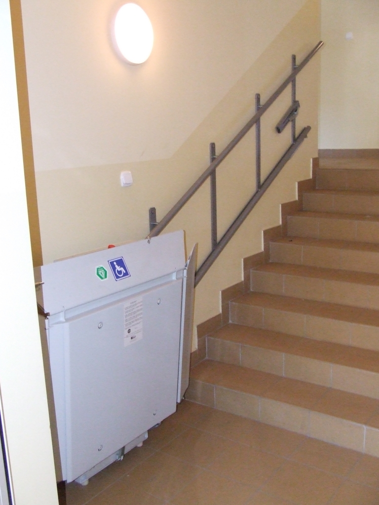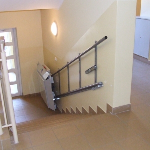 Innowacyjnym rozwiązaniem jest w opcji dodatkowej zamontowanie siedziska i jest to propozycja dla osób poruszających się o własnych siłach, ale mąjcych problem z pokonaniem schodów. Wówczas przejazd platformą na krzesełku daje chwilę wytchnienia.