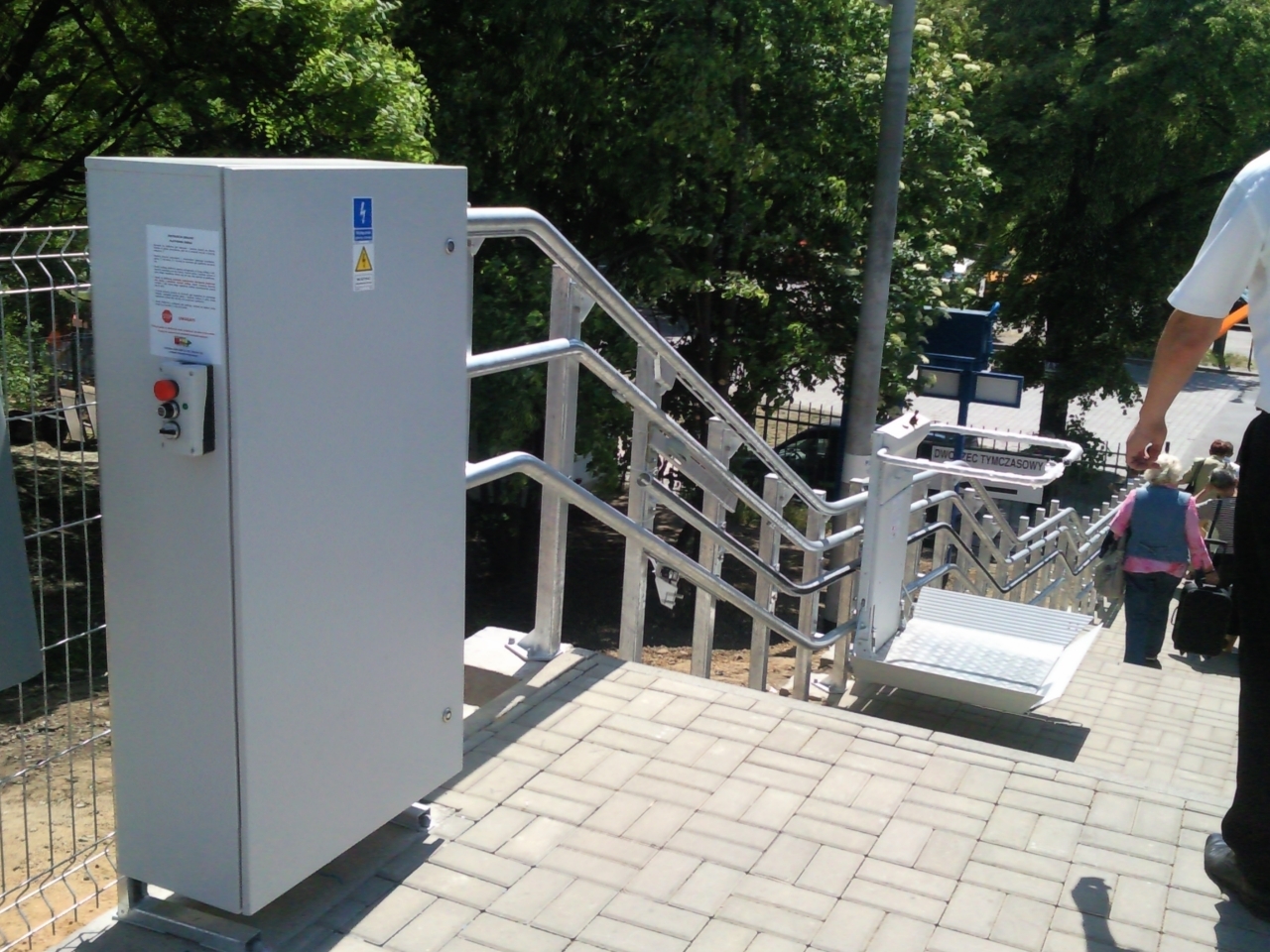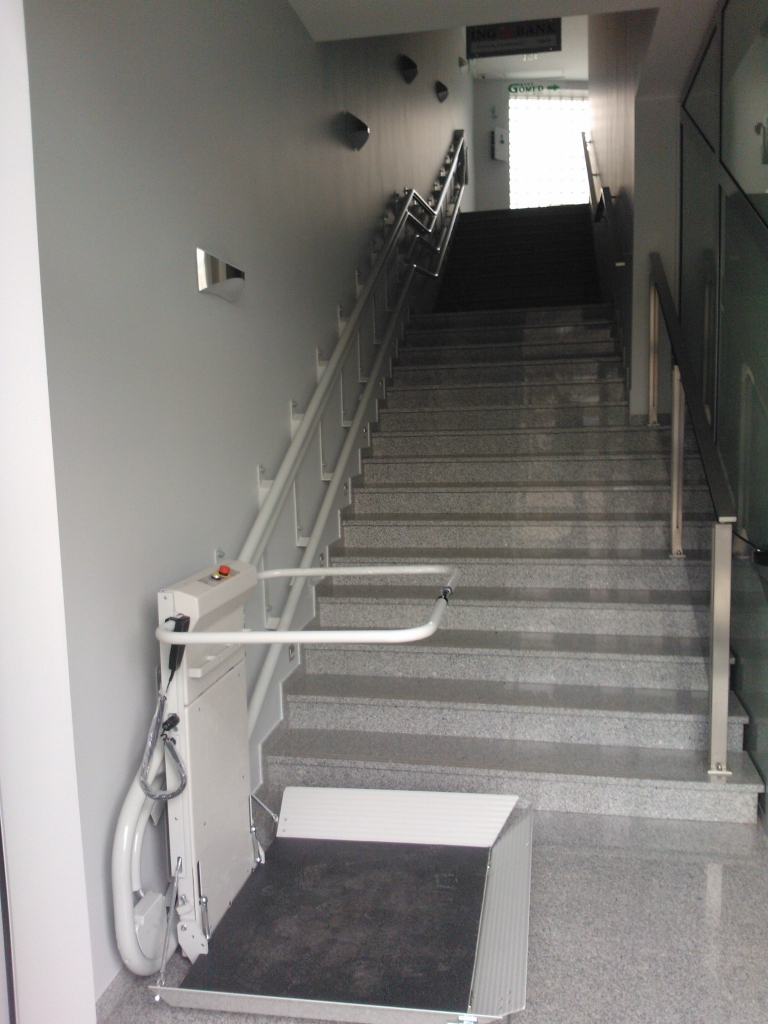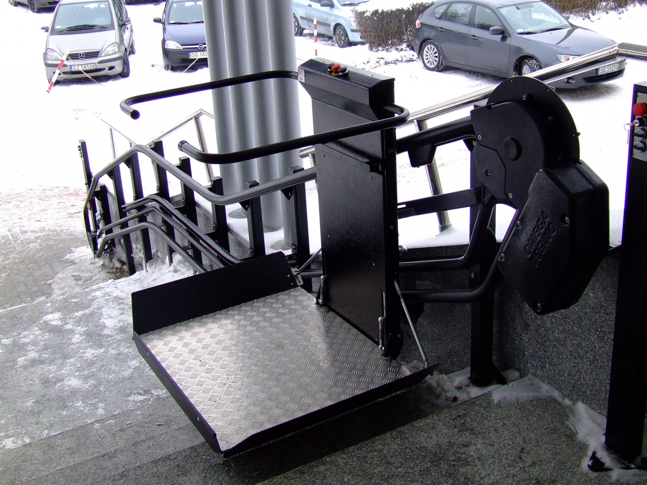 Platforma przychodowa O-GA przeznaczona jest do pokonania różnicy poziomów w postaci schodów przez osoby poruszające się na wózka inwalidzkich lub dla osób, które chodzą lecz mają problemy z przemieszczaniem się po schodach.