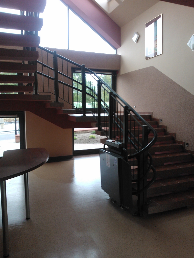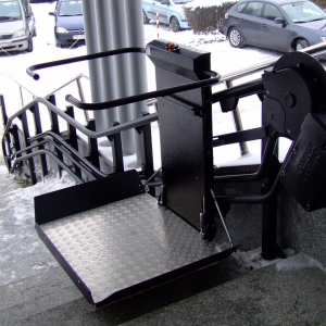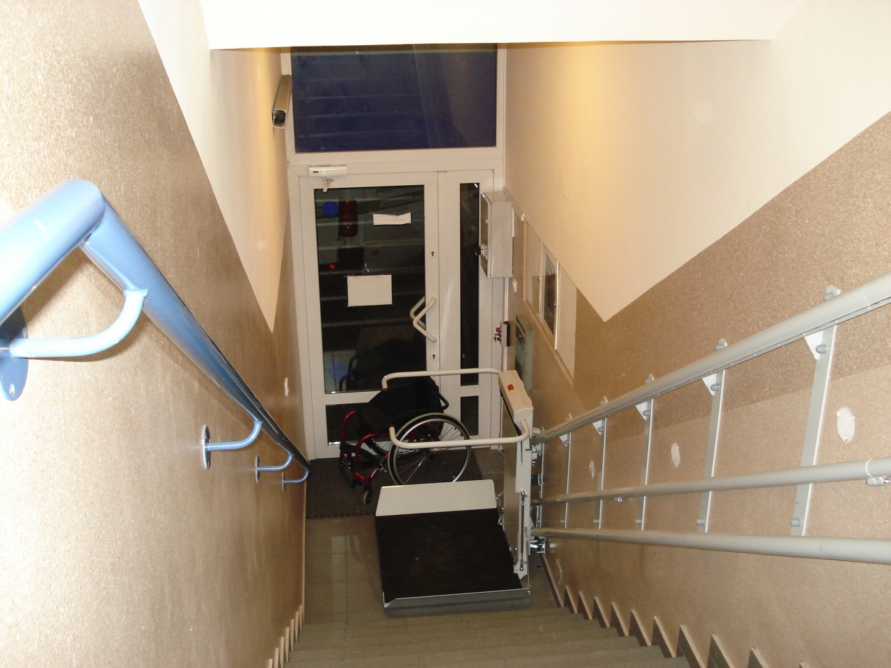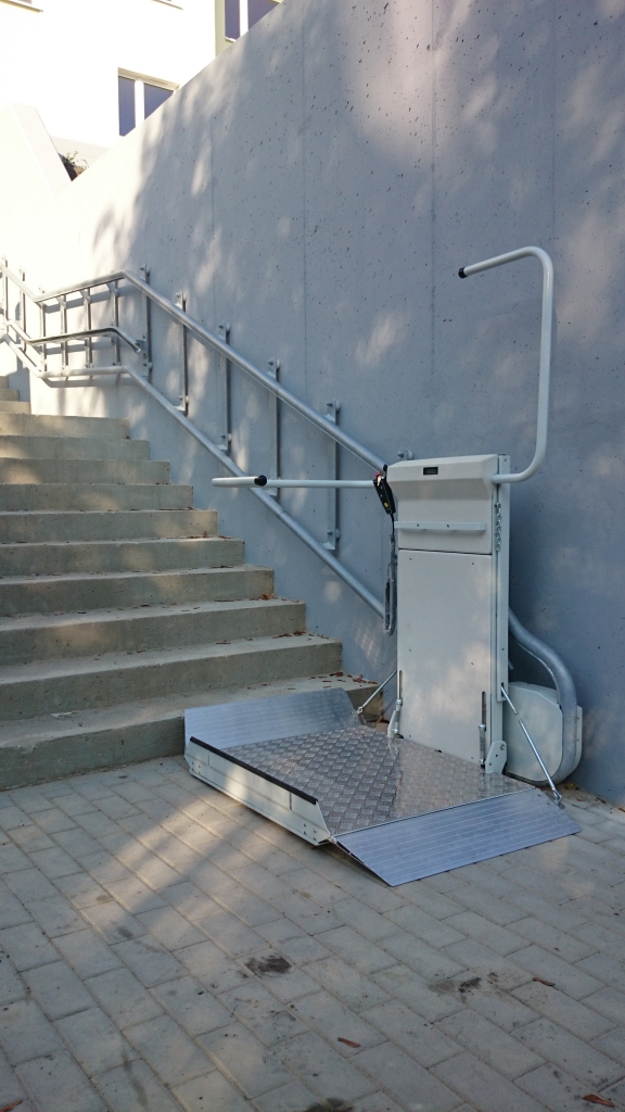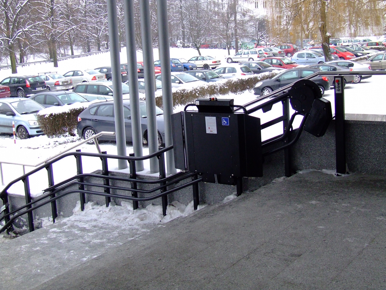 Platforma przychodowa O-GA przeznaczona jest do pokonania różnicy poziomów w postaci schodów przez osoby poruszające się na wózka inwalidzkich lub dla osób, które chodzą lecz mają problemy z przemieszczaniem się po schodach.