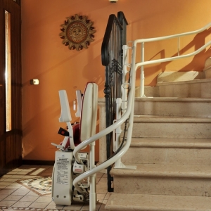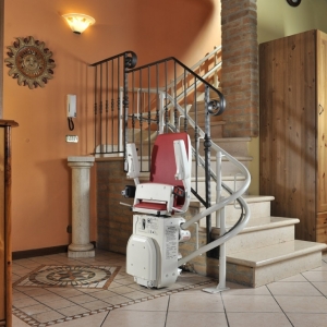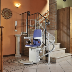Winda schodowa Platinum porusza się po torze krzywoliniowym.To ciekawa propozycja dla osób starszych, niepełnosprawnych mających problem przy pokonywaniu schodów, często we własnym domu. Urządzenie jakie proponujemy ma kształt estetycznie wykonanego krzesełka dźwigowego o napędzie elektrycznym. Krzesłko przyschodowe może poruszać się po szynie o dowolnym kształcie, dzięki joystikowi sterującemu zlokalizowanemu pod prawym lub lewym podłokietnikiem. Krzesełko jest wykonane z tworzywa o dużej wytrzymałości i łatwości pielęgnacji.