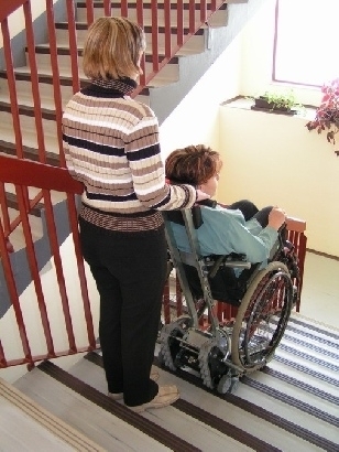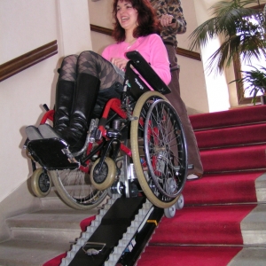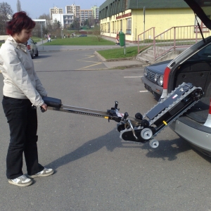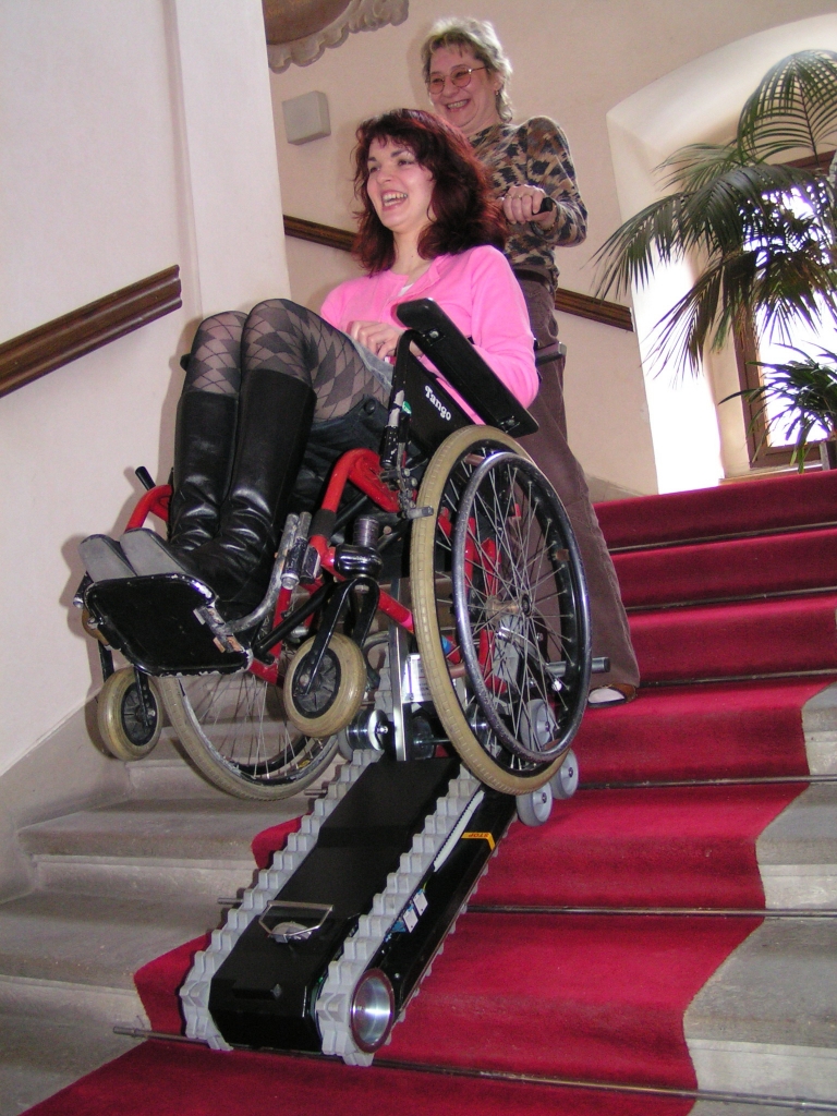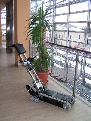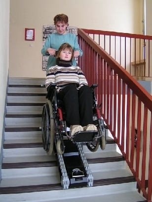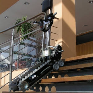Schodołaz gąsienicowy CLIMBER 1 jest urządzeniem mobilnym, poruszającym się po schodach, ułatwiającym transport osoby niepełnosprawnej wraz z wózkiem. Korzystanie z urządzenia wymaga obecności opiekuna. W standardzie schodołaz gąsiennicowy Climber 1 posiada specjalnej konstrukcji elementy mocujące wózek z osobą niepełnosprawną do górnej kolumny, które pozwalają na zamontowanie na urządzeniu 95 % rodzajów wózków ręcznych inwalidzkich. Wyjątek stanowią: wózki elektryczne, wózki do aktywnej rehabilitacji, wózki z małymi kołami tylnymi oraz wózki o szerokości powyżej 50 cm. Jednak po specjalnych modyfikacjach również takie wózki mogą zostać zamontowane na schodołazie CLIMBER 1.